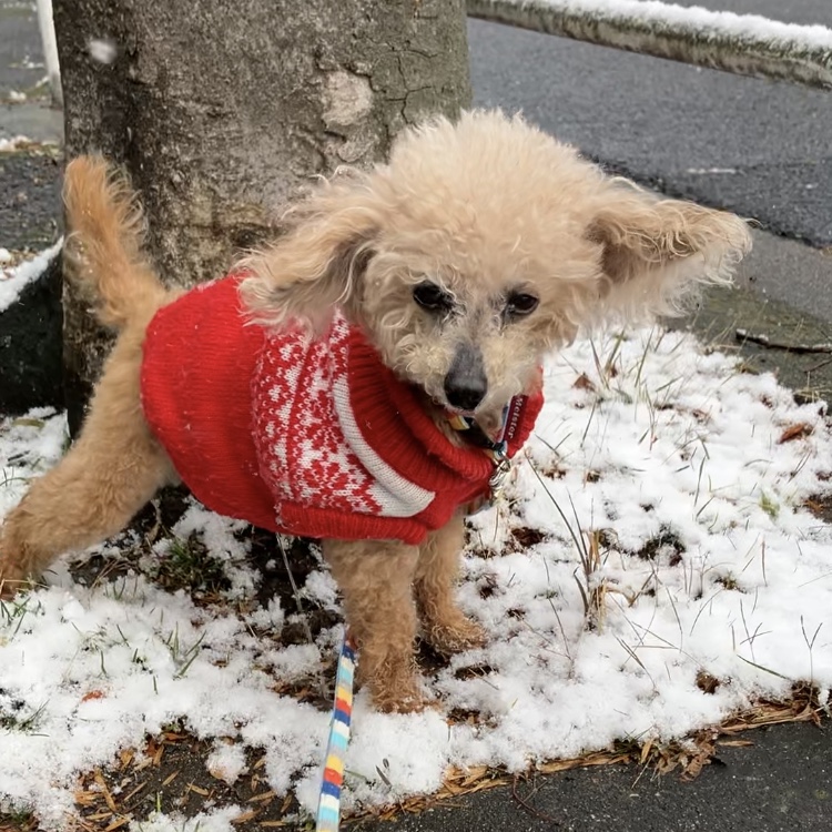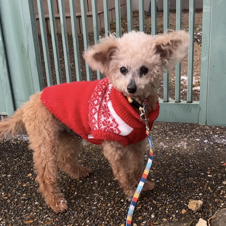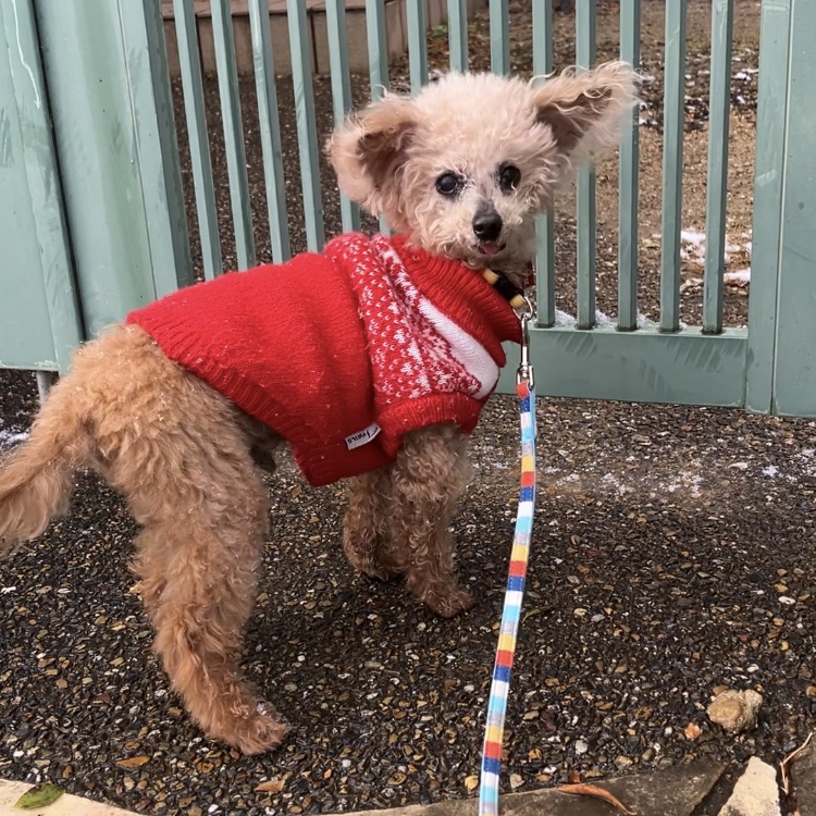 涼介ちゃんはシニア犬で、寒いのは苦手💧