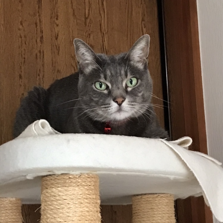 『辻井さんは何をしているのだろうか??』とキャットタワーの上からご飯準備や洗い物・トイレ掃除などしている様子を観察。