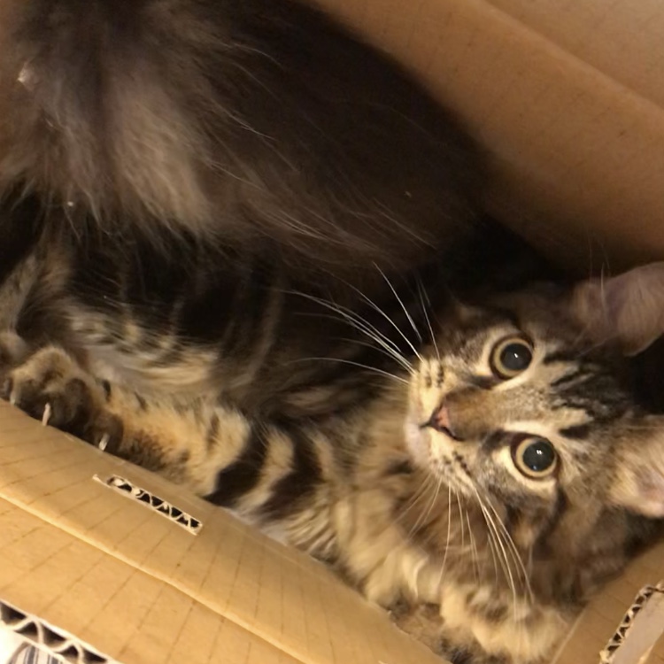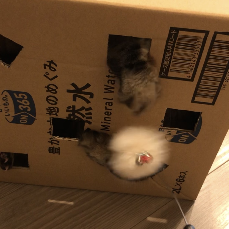 ダンボールに穴を開けて中に入りながら遊ぶ物なのですが、エマちゃん気に入ってくれて、中に入り穴から手を出して夢中で遊びます🎵