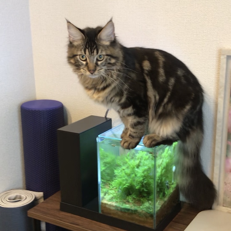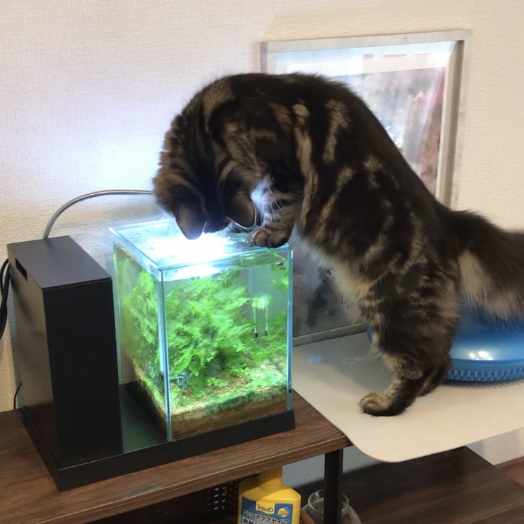 だからと言って魚を食べたい!などは1ミリたりとも思っていないエマちゃん。エマちゃんの興味はこの水槽の水なのです‼️