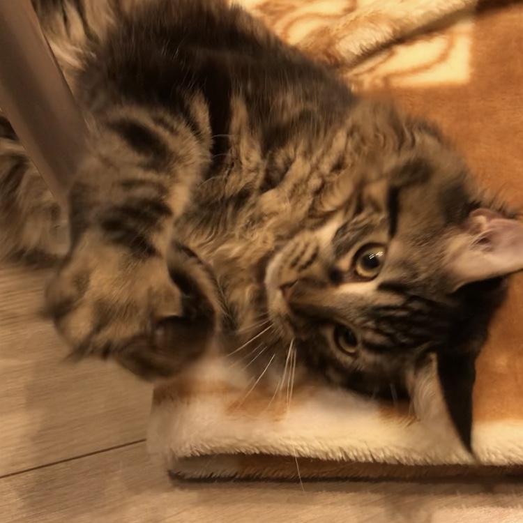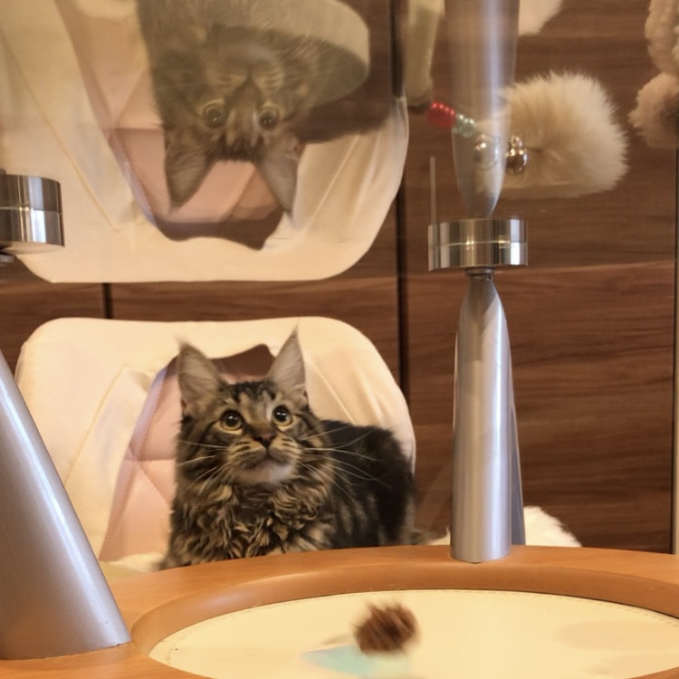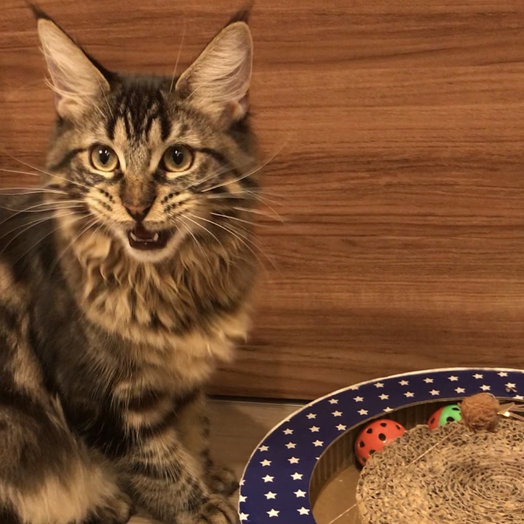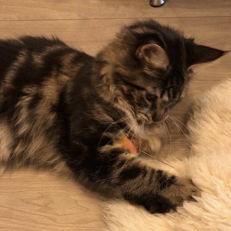 爪研ぎとしては使っているけれど、『どうやって遊ぶにゃ!』なエマちゃんとこうやって遊ぶんだよ〜と一緒にコロコロしたり、猫のおもちゃでぴょんぴょん遊ばせて頂きました⭐️