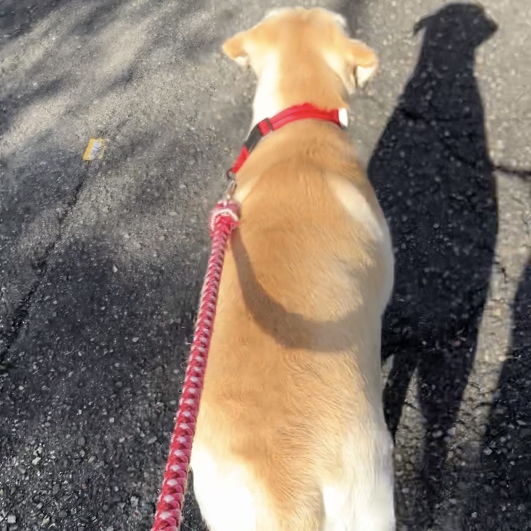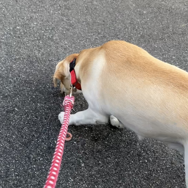 翌日の朝もしっかり歩き、いつもと違うコースだからか、地面は入念にチェックのレインボーちゃん🌈