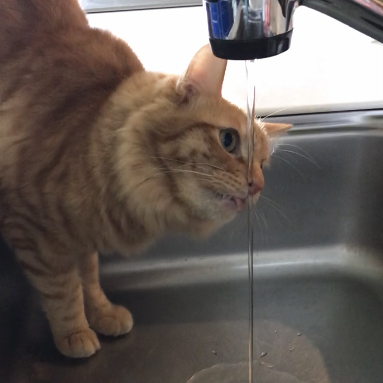 ピーちゃん今回は流しのところにきて、不思議そうに水道を見ており、『飲んでみる??』と水道の水を少し出してみると、少し警戒しながらも『ぺろぺろ〜』と飲んでくれました😊