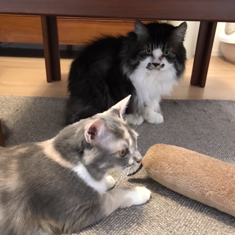 むうちゃんはナルシストさんなので、おもちゃを追いかけてもすぐに毛が気になるオシャレさん🎵私の目を盗み、うにちゃんのご飯を食べに行ったり…心優しいお兄さんです!