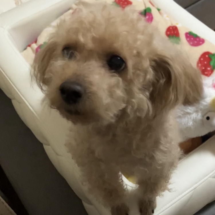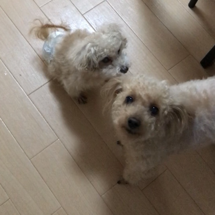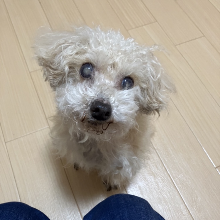 ぷりんちゃん目は見えていませんが、いつものように私のことを探し、一生懸命『ここだ!』と飛び跳ねてくれました😊✨