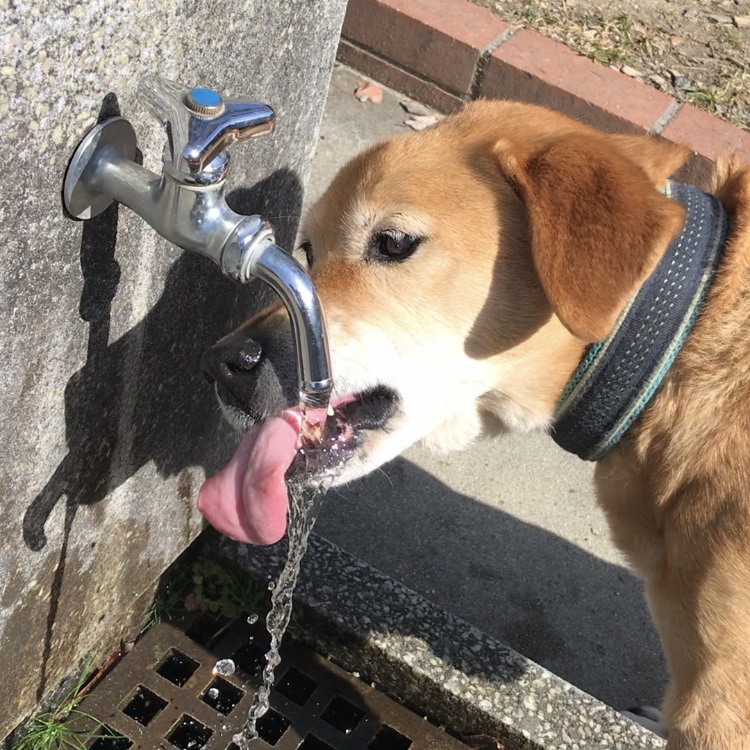 そんな公園では、りつくくんお馴染みの給水場所もあり、賛否はあると思うのですが…公園の水道蛇口から豪快に飲むのが好きなりつくくん。人間が口をつける場所じゃないから…ギリギリセーフ、OKかな?