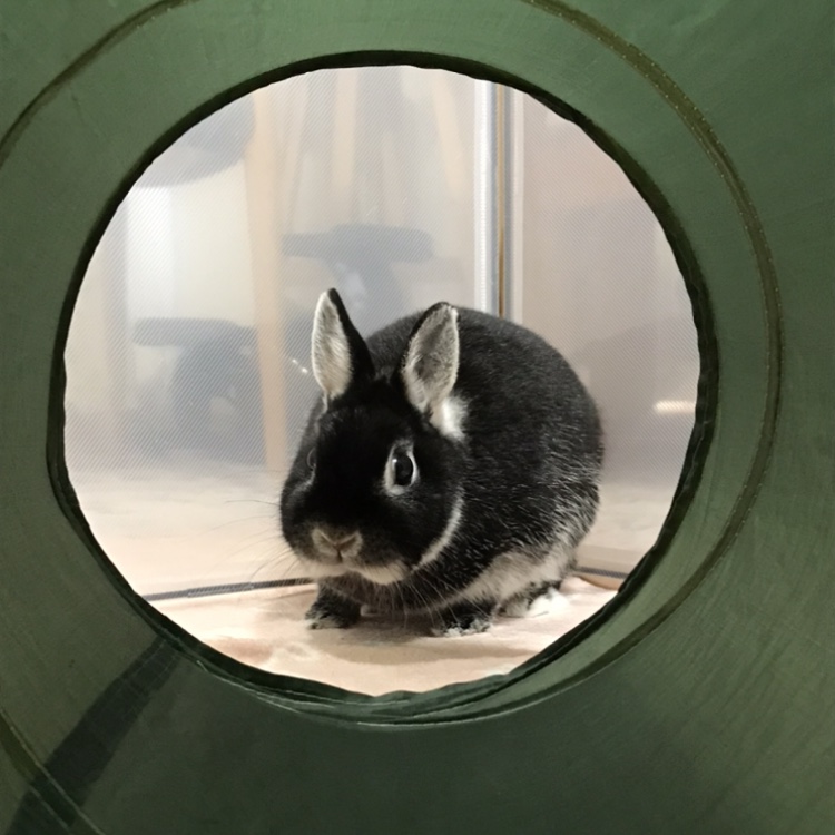 今回ケア中は、フリースペースで主に過ごし、トンネルに入ってみたり、いつものようにのんびりと過ごせたミルキーちゃん。